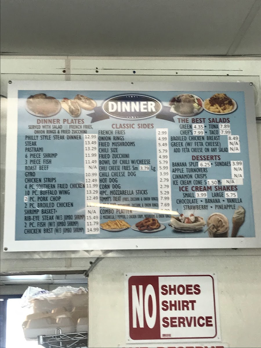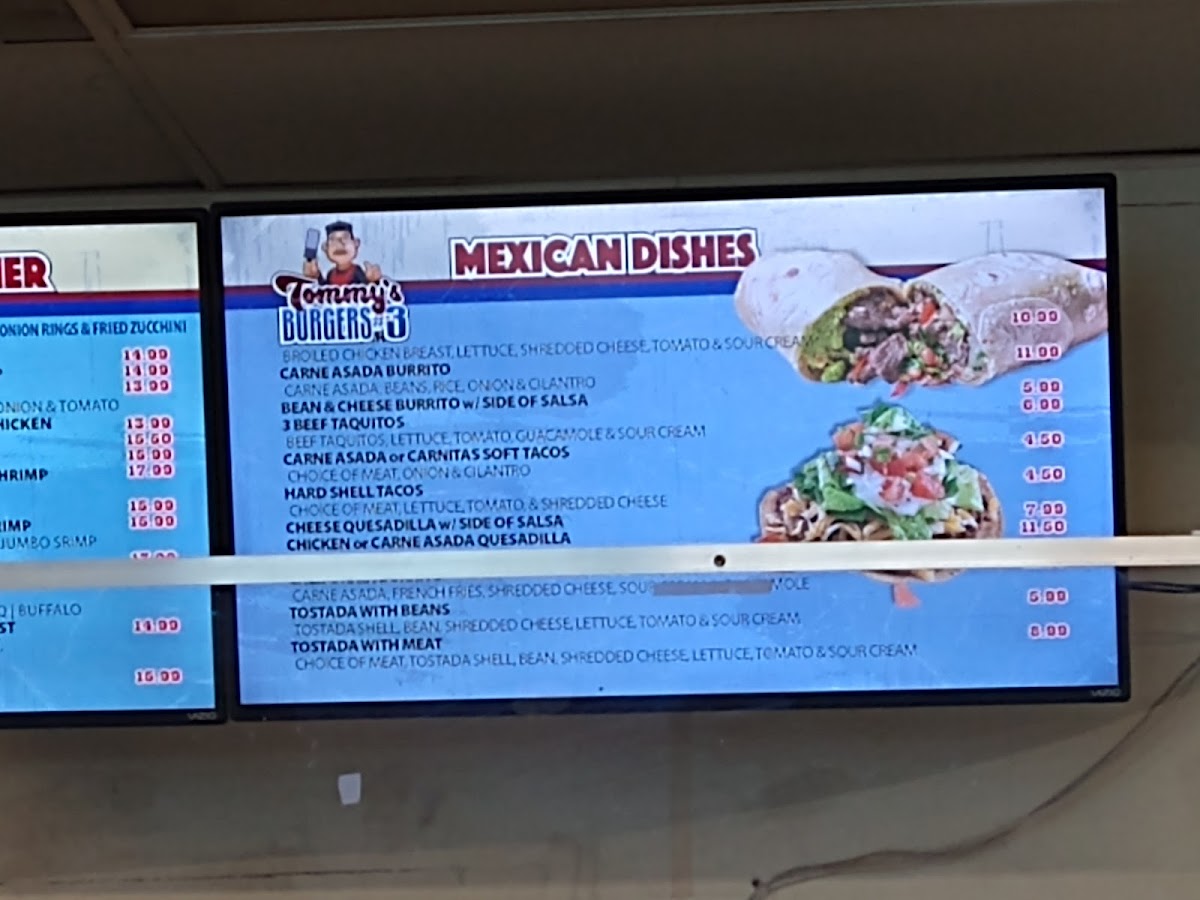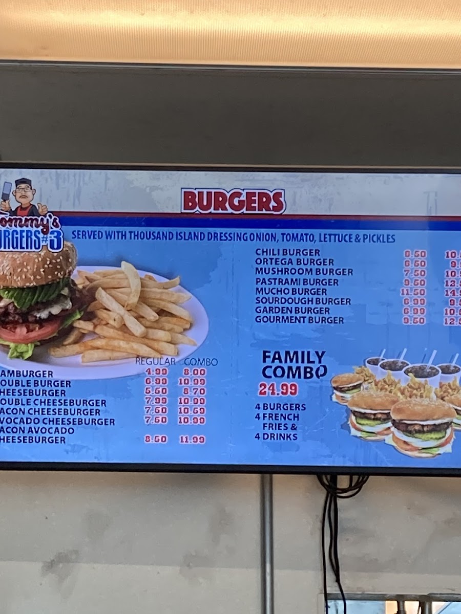 Tommy's Burgers Menu